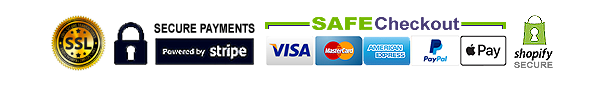 Our payments are SSL secured and Shopify Secure, Powered by Stripe, PayPal or ApplePay, whichever you choose.